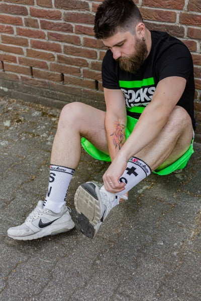 Unsere Sk8erboy® Sportshorts in Neon-Grün sind die perfekte Kombination aus Komfort und Fashion. Hergestellt aus leichtem Material, glänzen sie direkt im Fitnessstudio. Mit ihrem Sk8erboy Taillienband und Logo-Streifen sehen sie einfach geil aus und sorgen für einen versauten Anblick. Zudem sind die Shorts mit Seiten- und Rückentaschen sowie einem Innennetz ausgestattet, das verhindert, dass Ihr Geldbörse und Handy beim Training hin und her rutschen.