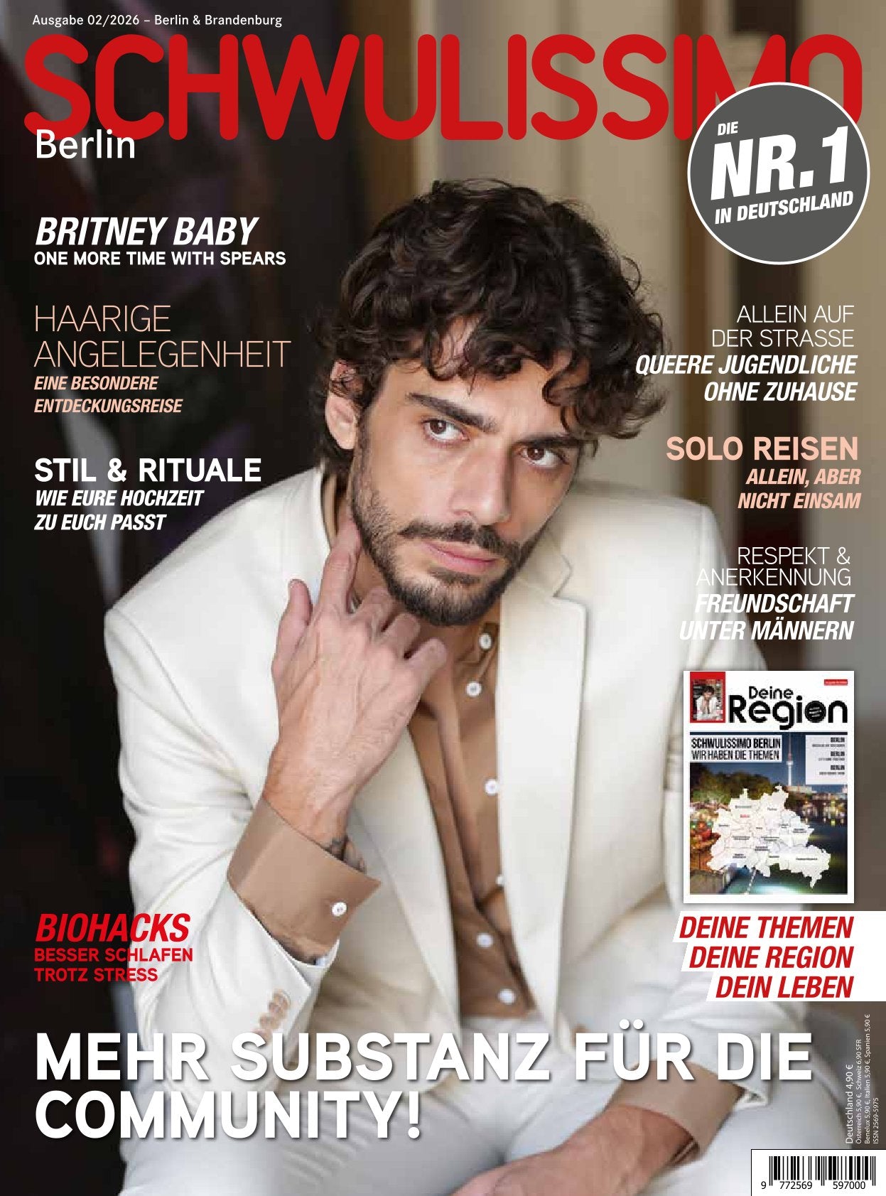 Berlin ist schnell, laut, lebendig. Genau dafür ist diese Februar Ausgabe gemacht. SCHWULISSIMO Berlin bringt Biohacks für besseren Schlaf trotz Stress, dazu Popkultur mit Britney Spears und ein wichtiges Thema, das viele unterschätzen: Respekt und Anerkennung in Freundschaften unter Männern.